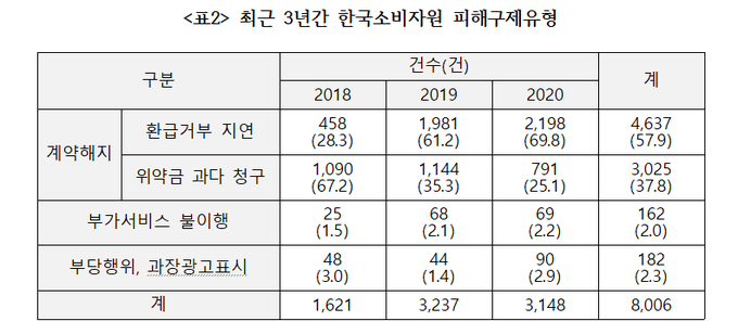 - ‘해지위약금을 지나치게 많이 요구했다’ 27건(14.4%),