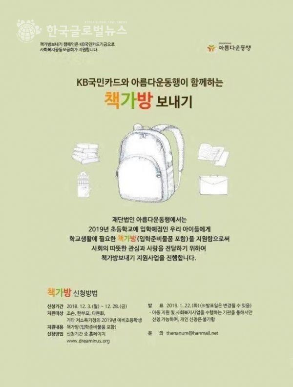 KB국민카드와아름다운동행이함께하는 책가방 보내기