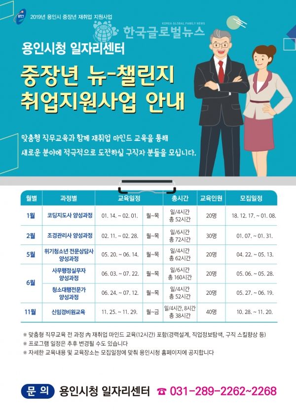 용인시는 중?장년 구직자들의 재취업을 돕기 위해‘뉴-챌린지 취업지원 프로그램’6개 과정을 연중 운영한다.