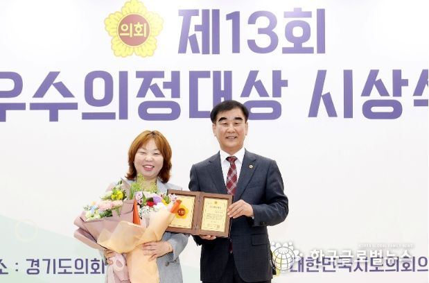 (한국글로벌뉴스 - 박소연 기자) 전자영 경기도의원(더불어민주당, 용인4)은 13일 2023년 대한민국시도의회의장협의회에서 수여하는 ‘우수의정대상’을 수상했다.