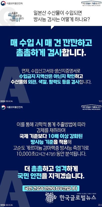 (한국글로벌뉴스 - 박경희 기자) Q. 일본산 수산물이 수입되면 방사능 검사는 어떻게 하나요?