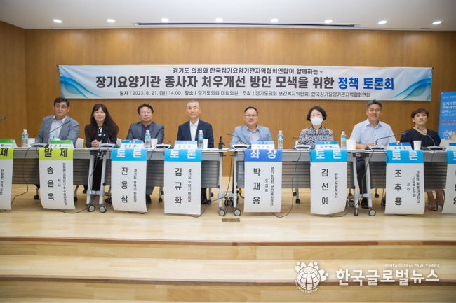 (한국글로벌뉴스 - 박경희 기자) ‘장기요양기관 종사자 처우 개선 방안 모색’을 위한 정책토론회가 지난 8월 21일 ‘한국장기요양기관지역협회연합(이하 한장연)’ 주최로 경기도의회 대회의실에서 열렸다.