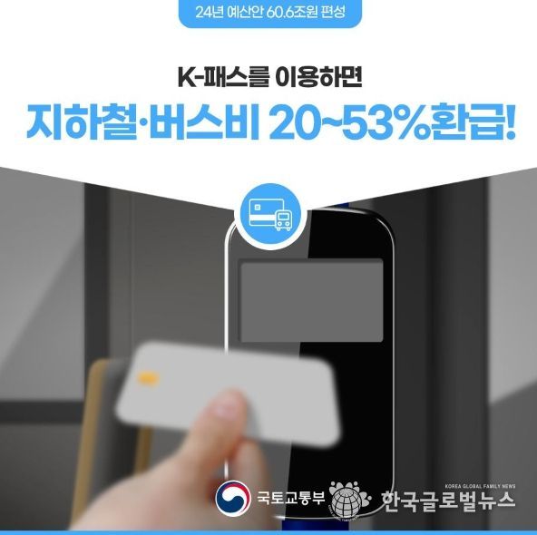 24년 하반기부터 대중교통비 환급 지원사업(가칭 K-패스)이 신규 추진된다. 국토교통부는 K패스를 통해 더 많은 혜택을 받을 수 있도록 노력할 예정이라고 밝혔다.