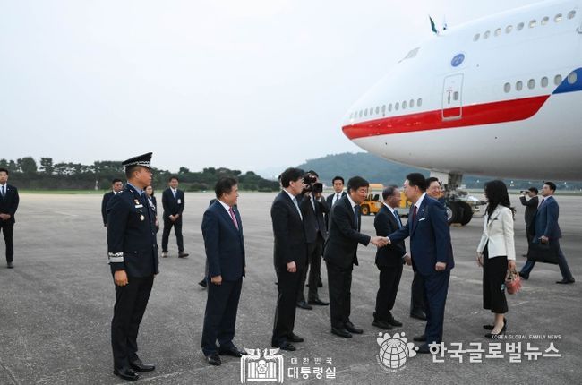 (한국글로벌뉴스 - 박소연 기자) 9월 11일 윤석열 대통령 부부는 동아시아국가연합(아세안·ASEAN) 정상회의와 주요20개국(G20) 정상회의 일정을 마치고 서울공항에 도착했다.