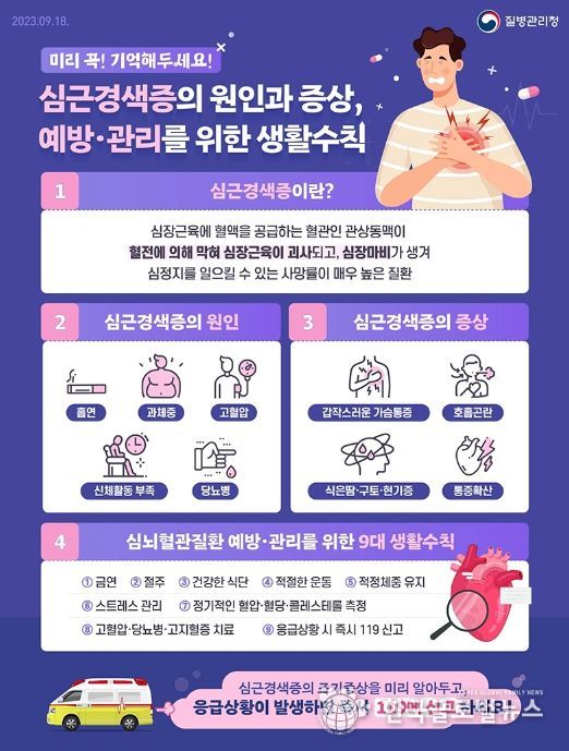 (한국글로벌뉴스 - 박경희 기자) 심근경색증 예방·관리를 위한 생활수칙