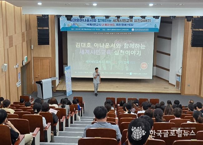 이번 연수는 군포의왕 관내 단위학교의 학생, 학부모, 교사 등 300여명의 교육공동체 대표들이 참석하여 요즘 ‘나 혼자 산다’의 프로그램 외 다양한 방송 출연으로 대중들의 큰 인기를 얻고 있는 김대호 아나운서와 함께 세계시민교육 실천 이야기를 나누며, 학교급별 학생, 학부모, 교사 등 교육공동체들 간 소통하는 자리를 통해 세계시민(학교민주시민)교육 실천 의지를 다질 수 있는 뜻깊은 시간이었다.