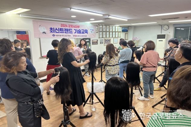 (한국글로벌뉴스 - 박소연 기자) 군포시 소상공인연합회는 지난 12일~20일까지 대한미용사회 군포시지부 사무실에서 미용업 종사자 20명을 대상으로 4시간씩 4회 역량강화 미용 기술교육을 실시했다.