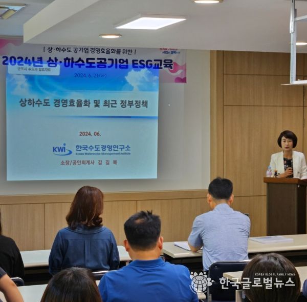 (한국글로벌뉴스 - 박소연 기자) 군포시는 지난 21일 수도녹지사업소 공직자를 대상으로 ‘상하수도 경영효율화 및 ESG경영 교육’을 추진했다