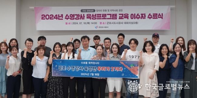 (한국글로벌뉴스 - 박소연 기자) 군포도시공사는 지난 18일 본사 2층 대회의실에서 제2기 수영강사 육성 프로그램 수료식을 진행했다.