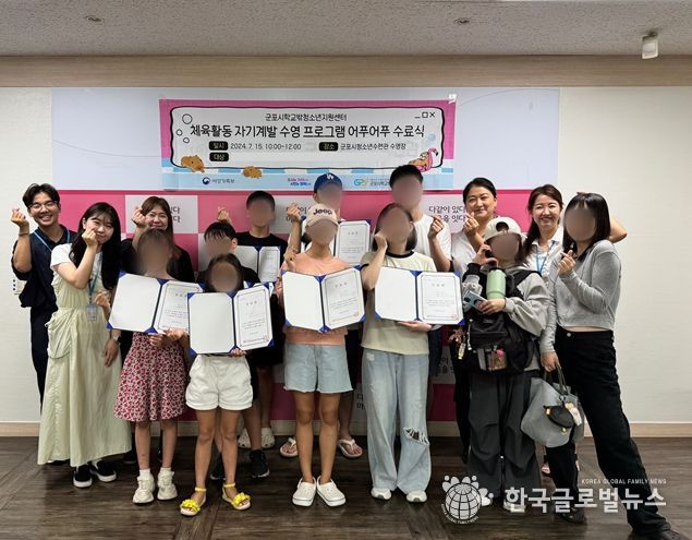 (한국글로벌뉴스 - 박소연 기자) (재)군포시청소년재단 군포시학교밖청소년지원센터는 지난 7월 15일 군포시청소년수련관에서 학교 밖 청소년 생존수영’프로그램 수료식을 가졌다.