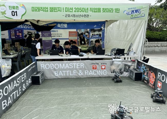 군포시청소년수련관은 지난 5월 24일 경기 청소년의 날을 기념하여 수원청소년문화센터 일대에서 진행된‘경기청소년진로문화축제’에서 인공지능, 사물인터넷, 안내로봇등 다양한 미래직업을 체험하는 챌린지 형식의 부스인 “4차산업 미래직업 챌린지”를 운영했다.