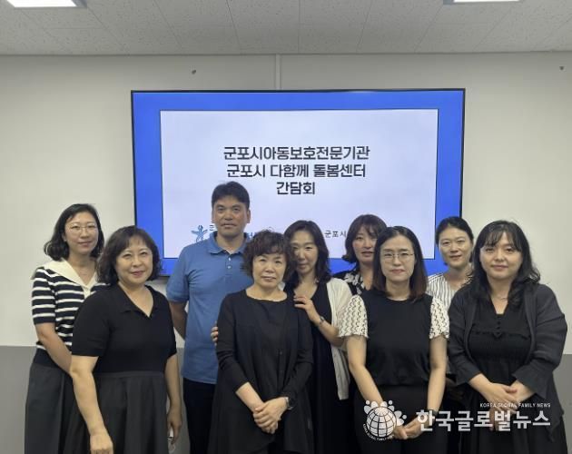(한국글로벌뉴스 - 박소연 기자) 8월 21일 군포시아동보호전문기관은 군포시 다함께돌봄센터 숲속반디채점(1호점), 옥천마을점(2호점), 군포1동점(5호점), 산본2동점(6호점), 금강펜테리움 3차점(7호점), 가족센터점(9호점), 송부종합복지관점(10호점) (순서대로 유지현 센터장, 김민정 센터장, 노부용 센터장, 이승희 센터장, 전미진 센터장, 방희정 센터장, 강문정 센터장)와 함께 아동학대예방 및 아동권리증진을 위한 간담회를 가졌다.