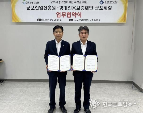 (한국글로벌뉴스 - 박소연 기자) 군포산업진흥원은 지난 28일 ‘군포시 혁신 중소벤처기업 발굴과 육성’을 위해 경기신용보증재단 군포지점과 업무협약을 체결했다고 밝혔다.