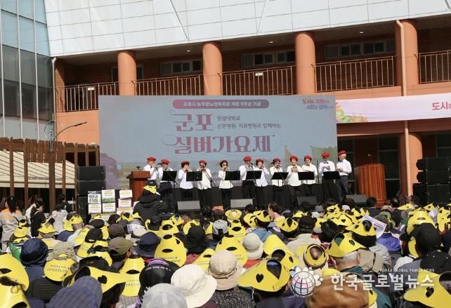 (한국글로벌뉴스 - 박소연 기자) 군포시늘푸른노인복지관은 10월 16일 군포시늘푸른노인복지관 개관9주년을 기념하여 원광대학교 산본병원·치과병원과 함께하는 군포실버가요제를 복지관 열린광장에서 지역주민과 지역어르신 약1,500명이 함께하며 성황리에 개최되었다.