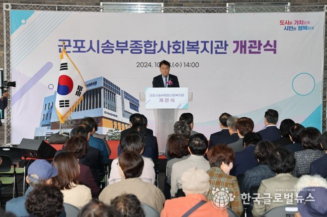 (한국글로벌뉴스 - 박소연 기자) 군포시는 지난 10월 23일 군포시 송부종합사회복지관(번영로 10)에서 하은호 군포시장과 지역주민 등 150여명이 참석한 가운데 ‘군포시 송부종합사회복지관’의 개관식을 가졌다.