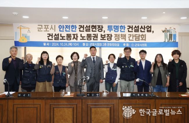 이를 위해 시의회는 24일 이동한 의원(산업건설위원회 위원장)이 주관해 ‘군포시 안전한 건설현장, 투명한 건설산업, 건설노동자 노동권 보장 정책 간담회’를 개최했다.