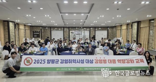 (한국글로벌뉴스 - 박소연 기자) 양평군은 9일 양평군평생학습센터 4층 온누리실에서 관내 감염취약시설 대상으로 ‘감염병 대응 역량 강화 교육’을 실시했다고 밝혔다.
