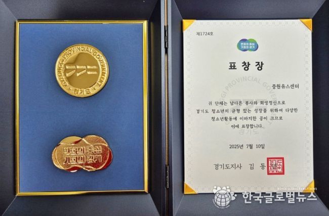 (한국글로벌뉴스 - 박소연 기자) 성남시청소년청년재단 중원유스센터가 7월 10일부터 11일까지 진행된 ‘2025 경기도 청소년수련시설 운영대표자 및 관리자 직무연수’에서 경기도지사상을 수상했다고 밝혔다.