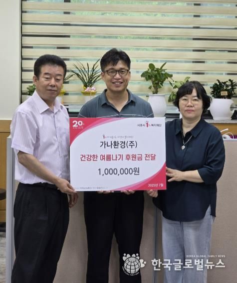 (한국글로벌뉴스 - 박소연 기자) 시흥시 정왕4동에 있는 가나환경은 지난 7월 16일 연일 이어지는 폭염에 취약한 저소득 가구를 돕기 위해 후원금 100만 원을 정왕4동 행정복지센터에 기탁했다.