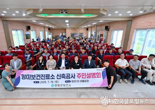 (한국글로벌뉴스 - 박소연 기자) 양평군은 지평면 망미 1리에 신축 예정인 망미보건진료소의 본격적인 착공에 앞서, 19일 주민들의 이해를 돕고 의견을 수렴하고자 주민설명회를 개최했다고 밝혔다.