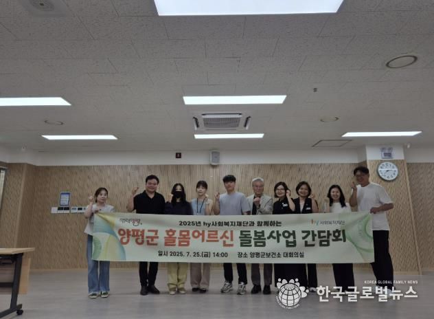 (한국글로벌뉴스 - 박소연 기자) 양평군은 지난 25일 hy사회복지재단(구 한국야쿠르트사회복지재단)과 함께하는 ‘양평군 홀몸어르신 돌봄 사업’ 간담회를 개최했다고 밝혔다.