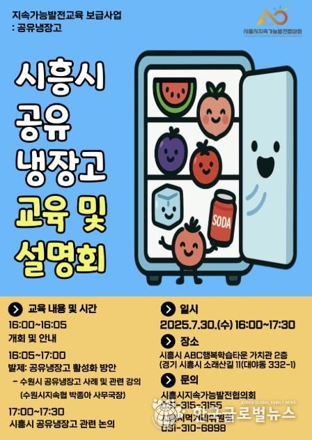 (한국글로벌뉴스 - 박소연 기자) 시흥시지속가능발전협의회는 7월 30일 오후 4시, 시흥ABC행복학습타운 가치관 2층 다목적홀에서 ‘공유냉장고 설명회 및 교육’을 개최한다.