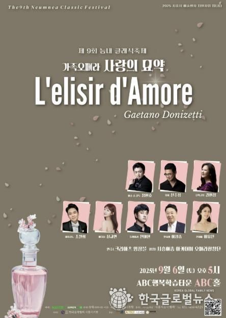 올해로 9회째를 맞는 늠내클래식 축제는 매년 수준 높은 클래식 음악회를 선보이며 지역 문화예술 발전에 기여해 왔다. 올해는 지난해에 이어 정통 오페라 ‘사랑의 묘약’ 공연을 통해, 시민들과 함께 만드는 더 의미 있는 무대를 선보일 예정이다.