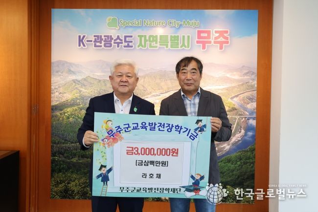 (한국글로벌뉴스 - 박소연 기자) 무주군 설천면에 소재한 ‘무주더맛집’, 산들애 식당이 (재)무주군교육발전장학재단에 장학금 3백만 원을 기탁했다.