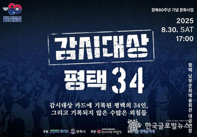 (한국글로벌뉴스 - 박소연 기자) 일제강점기 조국 독립을 위해 헌신한 독립운동가의 삶을 재조명하는 창작뮤지컬 ‘감시대상-평택34’ 공연이 오는 30일 평택남부문예회관 무대에 오른다.