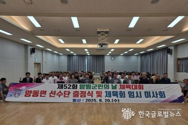 한편, 제52회 양평 군민의 날 체육대회는 오는 9월 11일 물맑은양평 종합운동장에서 열리며, 양동면은 축구, 족구, 게이트볼, 육상, 테니스, 탁구, 배드민턴 등 여러 종목에 출전해 기량을 겨룰 예정이다.