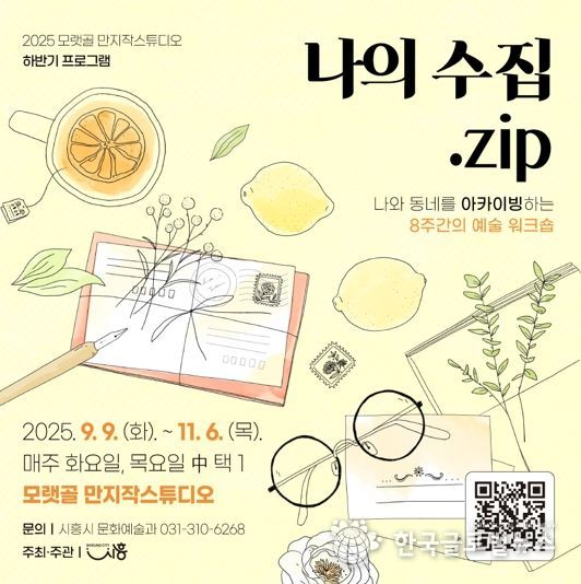 (한국글로벌뉴스 - 박소연 기자) 시흥시는 문화재생공간 모랫골 만지작스튜디오에서 하반기 프로그램 ‘나의 수집.zip’ 참가자를 모집한다. 이번 프로그램은 나와 동네를 기록하는 8주간의 예술 워크숍으로 글ㆍ사진ㆍ그림 등 다양한 예술 장르를 아우르는 프로그램이다.