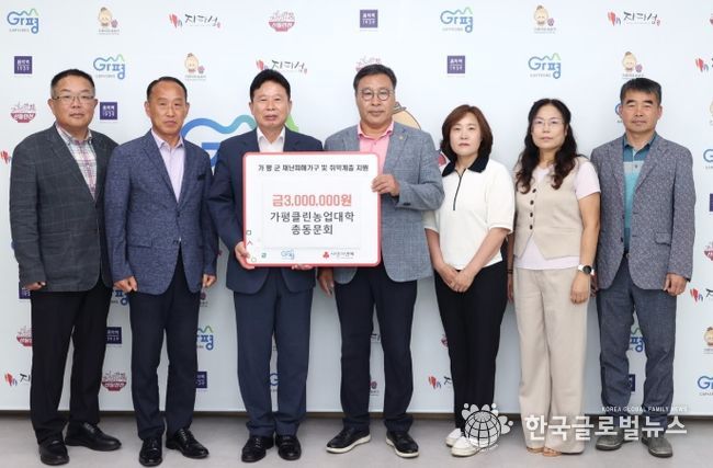 (한국글로벌뉴스 - 박소연 기자) 가평클린농업대학 총동문회가 최근 집중호우로 큰 피해를 입은 가평군에 성금 300만원을 전달했다. 이번 성금은 총동문회원들이 200만원, 임원진이 100만원을 모아 마련한 것이다.