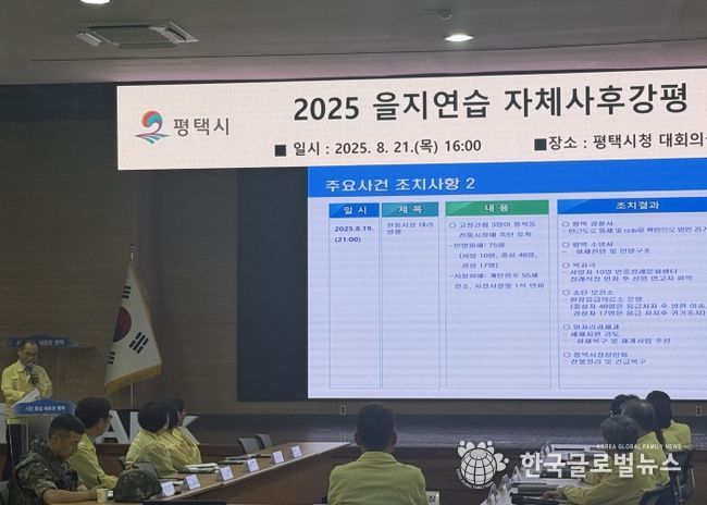 (한국글로벌뉴스 - 박소연 기자) 평택시는 지난 18일부터 21일까지 3박 4일간 실시한 2025 을지연습을 성공적으로 마무리하고, 마지막 날 사후 강평에서 최종 상황 보고를 진행했다.