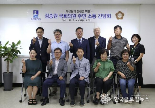 (한국글로벌뉴스 - 박소연 기자) 수원시 장안구 파장동 단체장협의회는 지난 4일, 파장동 행정복지센터를 방문한 김승원 국회의원(더불어민주당 경기 수원시갑)과 간담회를 진행했다.