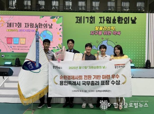 (한국글로벌뉴스 - 박소연 기자) 용인특례시는 5일 자원순환 분야 공로를 인정받아 ‘2025년 자원순환 유공 국무총리 단체 표창’을 받았다고 8일 밝혔다.