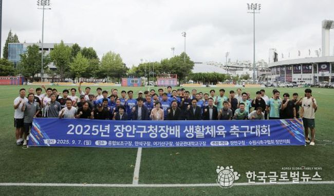 (한국글로벌뉴스 - 박소연 기자) 수원시 장안구는 지난 7일, 수원종합운동장·여기산·만석공원 인조잔디구장, 성균관대학교 축구장 등에서 ‘2025년 장안구청장배 생활체육 축구대회’를 개최했다,