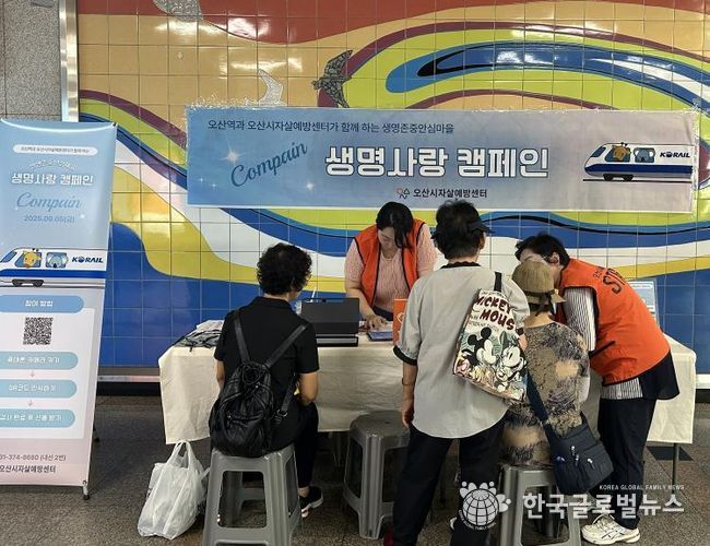 (한국글로벌뉴스 - 박소연 기자) 오산시정신건강복지센터 부설 자살예방센터는 9월 5일, 오산역에서 생명존중안심마을 사업의 일환으로 자살예방 합동 캠페인을 진행했다.