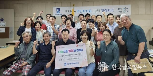 (한국글로벌뉴스 - 박소연 기자) 수원시 영통구 매탄4동 주민자치회는 추석 명절을 앞두고 소외된 이웃들에게 따뜻한 마음을 전하고자, 지난 9월 8일 회원들의 회비로 마련한 후원금 100만 원을 기부했다.