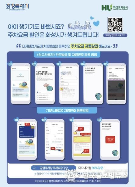시는 현재 다자녀가정(2자녀 이상)을 대상으로 ‘맘애좋은 화성다자녀카드’를 발급해, 공영주차장 67개소에서 주차 요금의 50%를 감면하는 등 다양한 우대 혜택을 제공하고 있다.