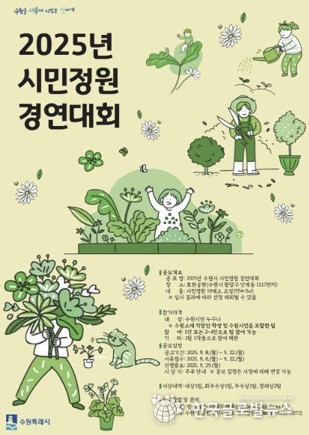 (한국글로벌뉴스 - 박소연 기자) 수원시는 9월 22일까지 ‘2025년 시민정원 경연대회’에 참가할 시민을 모집한다.