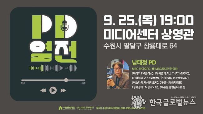 (한국글로벌뉴스 - 박소연 기자) 오는 25일 수원문화재단 수원시미디어센터는 2025년 특별프로그램 ‘수미C의 성덕일지 : PD열전 – 남태정 PD편’을 개최한다.