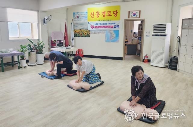 (한국글로벌뉴스 - 박소연 기자) 수원특례시에서 추진하는 시민안전교육 프로그램 ‘새빛안전지킴이’가 9월 9일, 팔달구 지동 신흥경로당에서 어르신들을 대상으로 심폐소생술교육(CPR)을 실시했다.