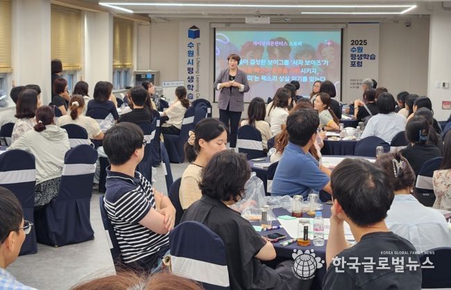 (한국글로벌뉴스 - 박소연 기자) 수원시는 AI(인공지능) 시대에 맞춰 평생학습 방향을 모색하고, 경기도 내 지자체 간 평생학습 네트워크를 강화하기 위해 12일 ‘2025년 수원평생학습포럼’을 열었다.