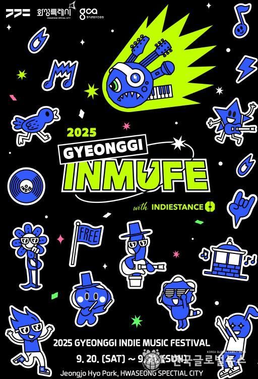 (한국글로벌뉴스 - 박소연 기자) 경기도 대표 가을 음악 축제 ‘경기인디뮤직페스티벌 2025’가 20일부터 21일까지 화성특례시 정조효공원에서 열린다. 경기도와 화성특례시가 주최하고 경기콘텐츠진흥원이 주관하는 인뮤페는 올해로 5주년을 맞이해 다채로운 무대와 풍성한 부대행사를 제공한다.