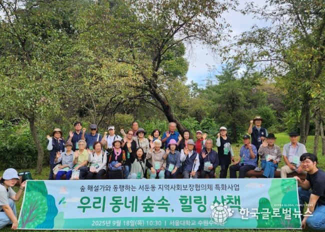 (한국글로벌뉴스 - 박소연 기자) 수원시 권선구 서둔동 지역사회보장협의체는 지난 18일, 관내 어르신 20명을 모시고 서울대농대 수원수목원에서‘우리 동네 숲속, 힐링 산책’숲 체험 나들이를 진행했다.