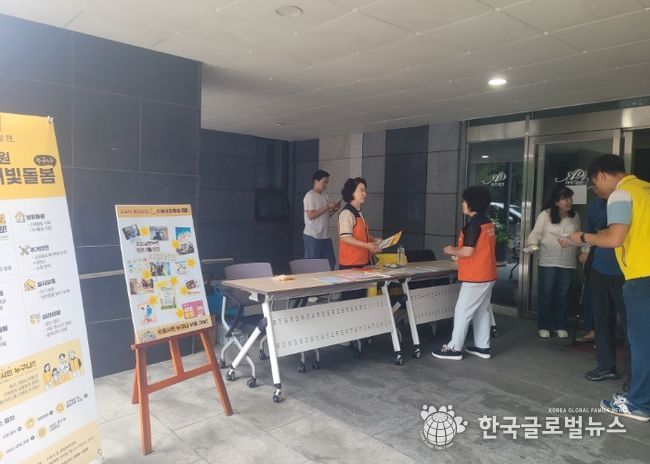 (한국글로벌뉴스 - 박소연 기자) 수원시 영통구청은 지난 15일부터 1주일간 광교1동과 원천동 지역사회보장협의체와 협력하여 '수원새빛돌봄(누구나)' 사업을 홍보했다.