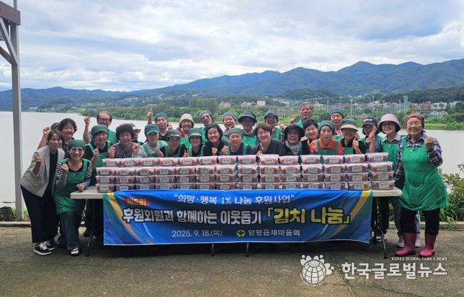 (한국글로벌뉴스 - 박소연 기자) 양평군 양평읍새마을회는 18일 양평읍 새마을사무소에서 ‘희망·행복 1% 나눔 후원 사업’과 후원회원들과 함께하는 이웃 돕기 김치 나눔 봉사활동을 펼쳤다.