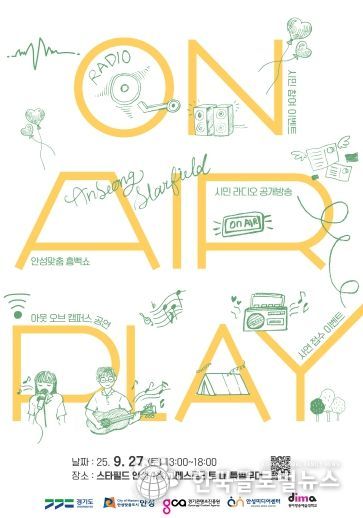 (한국글로벌뉴스 - 박소연 기자) 안성미디어센터가 시민 라디오 공개방송 'ON AIR PLAY'를 9월 27일 13시부터 스타필드 안성 1층 고메스트리트 내 특별무대에서 개최한다고 밝혔다.