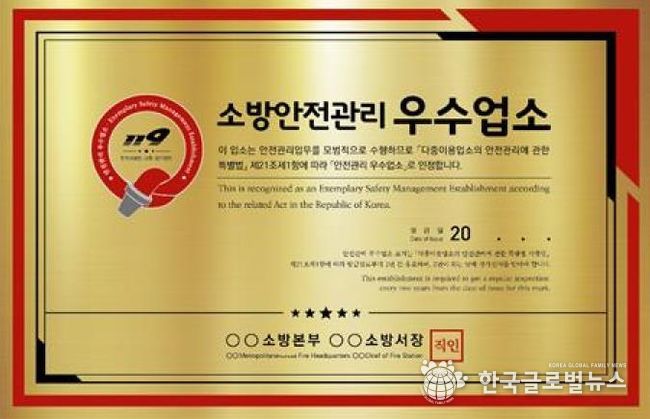 ‘다중이용업소 안전관리 우수업소 선정 제도’는 다중이용업소의 안전관리에 관한 특별법에 따라, 다중이용업소 안전관리의 자긍심 고취와 자율 소방안전관리 정착·유도를 도모하고자 운영되는 제도다.