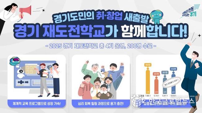 지난해 시범 운영에서도 수료자의 40%가 6개월 이내 재도전에 성공했으며, 올해부터는 경기도평생교육진흥원, 경기도일자리재단, 경기도시장상권진흥원 등이 협력해 맞춤형 취·창업 연계를 강화하고 있어 새출발 성공률이 더욱 높아질 것으로 보인다.
